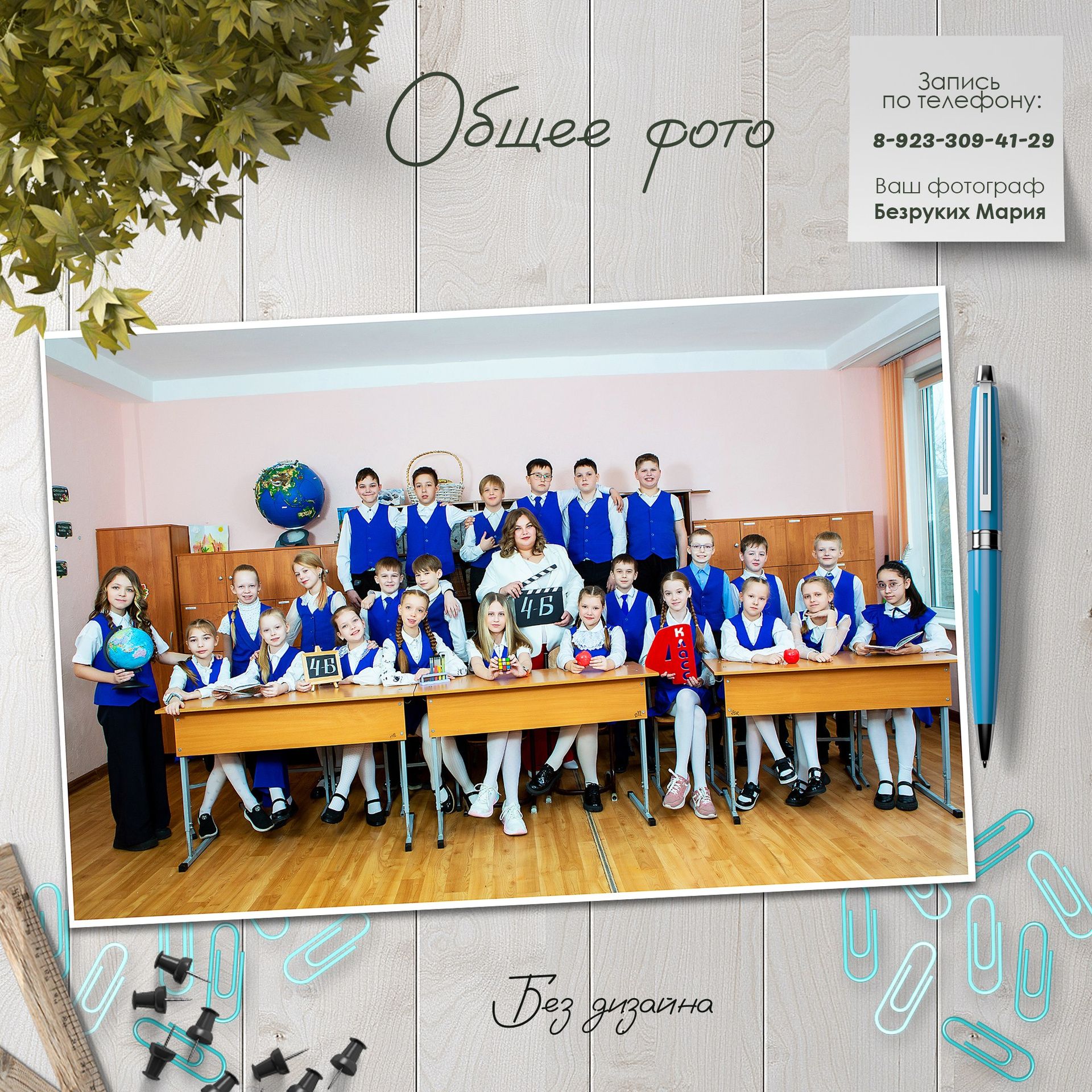 При заказе общего фото ВСЕМ классом в печатном виде (А4) — оно передается в эл. виде в подарок.